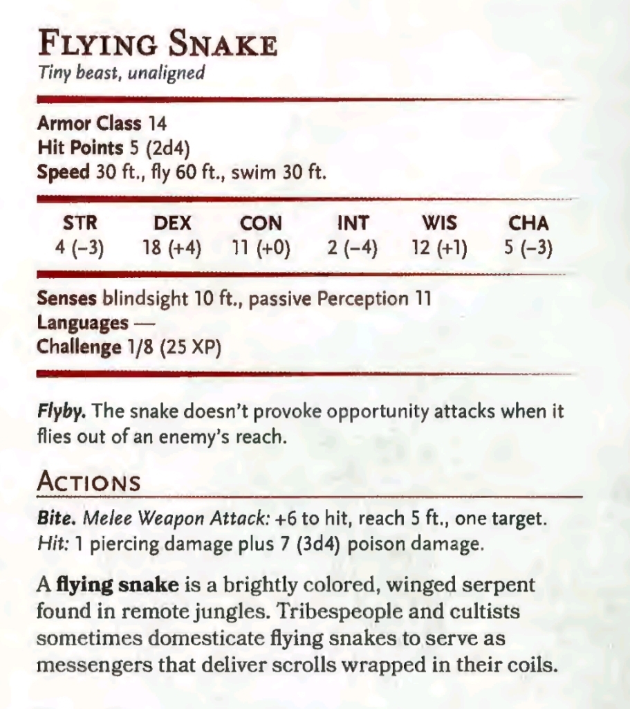 They are accompanied by three flying snakes that Vieta Maelwe has given them to command. For each snake, once per day they can look through that snake's eyes, though as long as they are doing so they are ignorant as to their own surroundings. They can command the snakes telepathically, but only within 300 feet.
